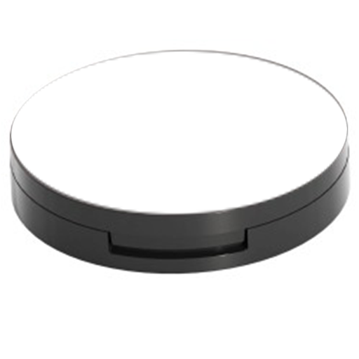 Round compact with flat lid, ideal for combo eyeshadow, blush, bronzer and highlighter.